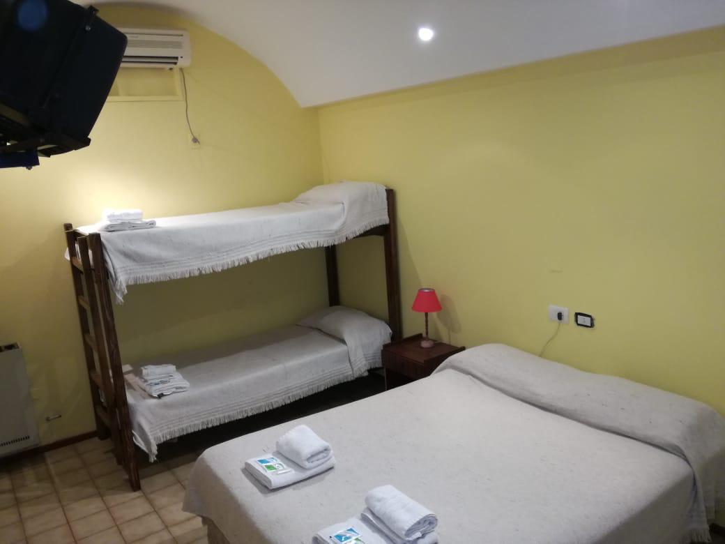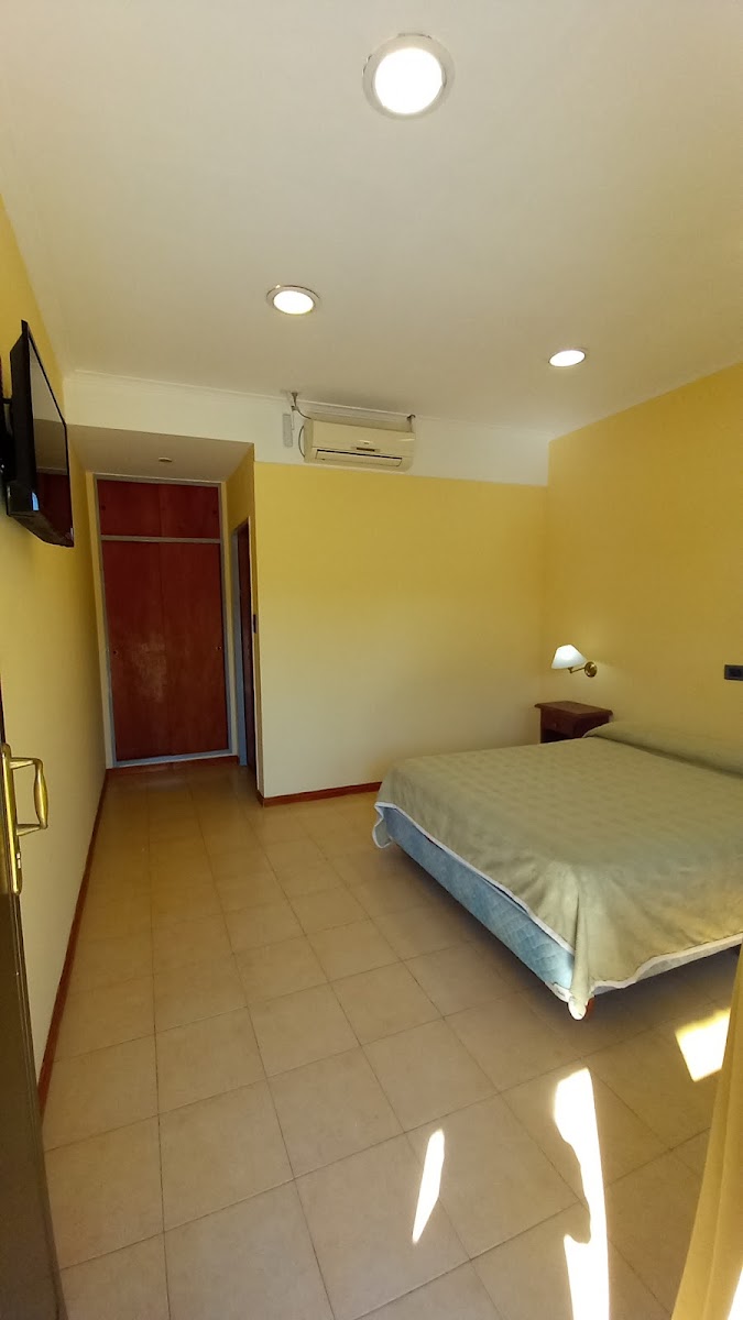 “ El hotel bueno, camas cómodas, habitación limpia, confortable, calefacción con losa radiante y aire frío y calor por si no alcanza con la losa. Un TV smart de 40 y pico pulgadas, en auto queda casi en la puerta de la habitación y el desayuno normal, tostadas, medialunas, tortas, café, leche y jugo. Cómo para mejorar perchero en habitación no hay y enchufes para cargar dispositivos solo 2 ( éramos 5 en la habitación una pelea constante) y secador de pelo tampoco tienen. ”